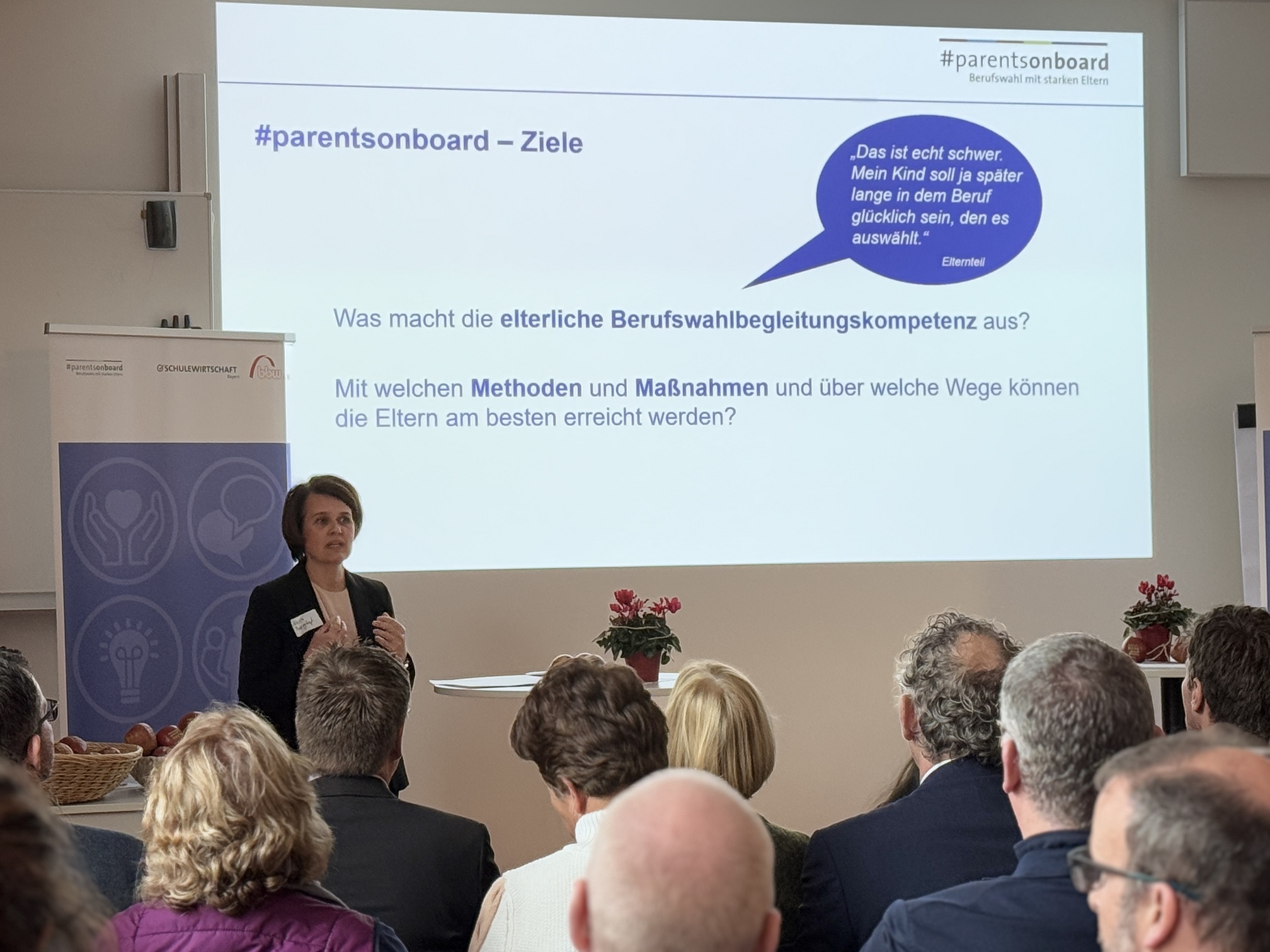 Nach gut zwei Jahren Projektlaufzeit wurde Bilanz gezogen bei #parentsonboard. Was wurde bisher geschafft und erreicht, auf welchen Aktivitäten liegt derzeit der Fokus und was ist perspektivisch geplant. Rund 50 geladene Gäste konnten sich am Vormittag des 07. November 2024 auf spannende Podiumsbeiträge und regen Austausch zum Thema „Eltern in der Berufsorientierung“ freuen.